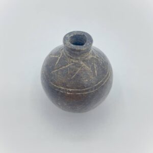 Antico vasetto indiano in bronzo inciso – contenitore per olio o profumo