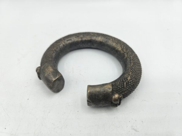 Questo tipo di bracciale era diffuso nell’Africa occidentale e utilizzato sia come ornamento personale che come strumento di scambio e riserva di valore. Oltre alla funzione economica, aveva anche un significato simbolico legato al prestigio sociale e alla ricchezza.