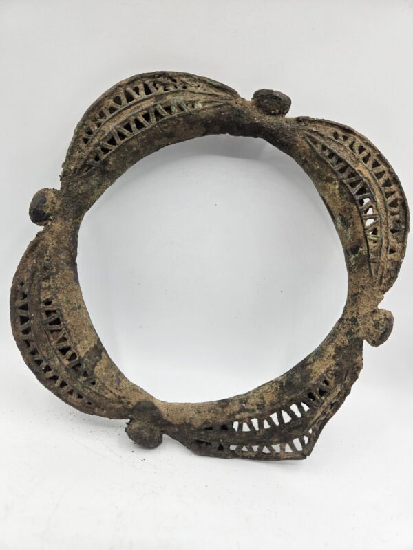 Antica cavigliera tribale in bronzo appartenente al popolo Dan, nota per le sue forme scultoree e il carattere fortemente simbolico.
