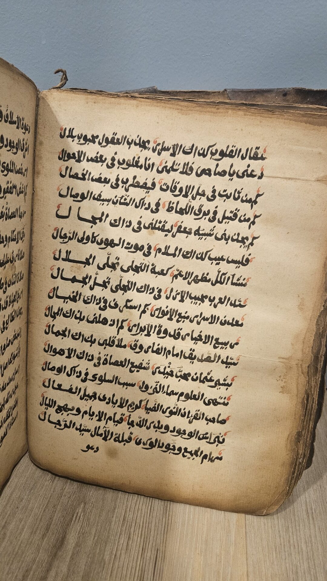 Corano manoscritto originale proveniente da Harar, Etiopia, uno dei più antichi e importanti centri dell’Islam nel Corno d’Africa. Il manoscritto è databile con buona probabilità alla prima metà del XIX secolo, periodo in cui Harar era un vivace polo di produzione e trasmissione del sapere religioso islamico.