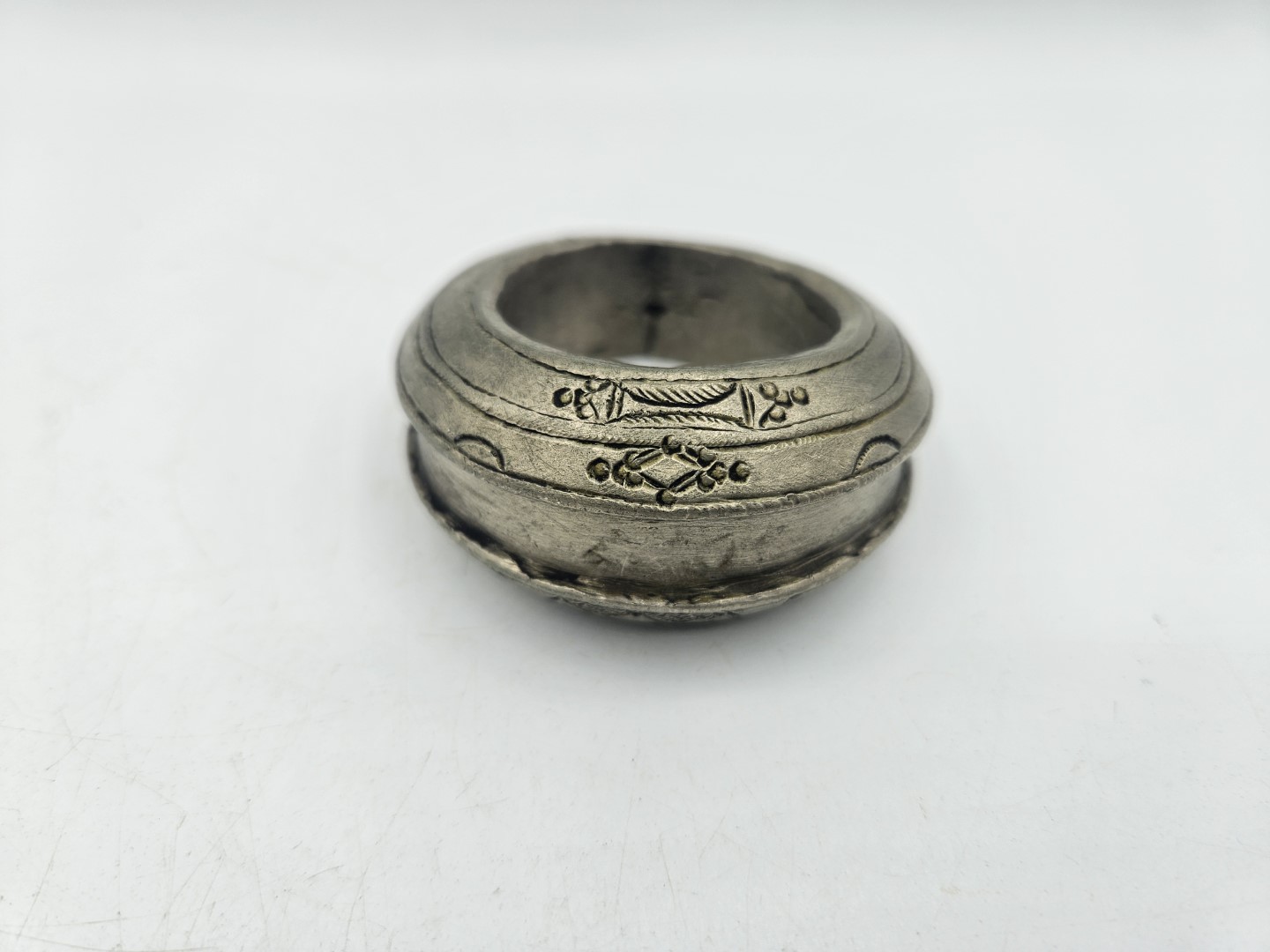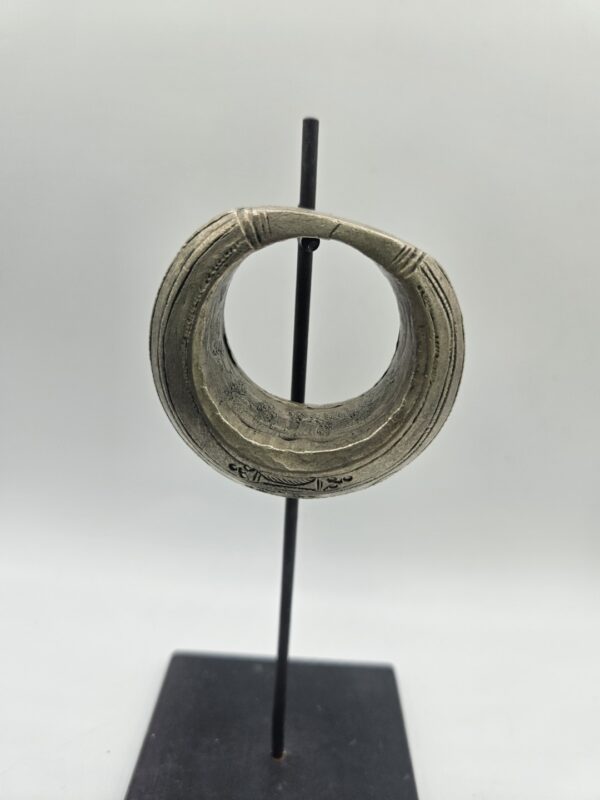 La forma anulare e il peso consistente suggeriscono che il pezzo fosse utilizzato come ornamento da corpo o come moneta-ornamento, destinato a dimostrare lo status e la ricchezza familiare.