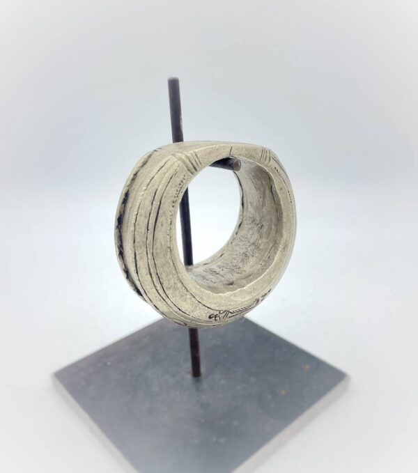 L’insieme, di forma essenziale e potente, esprime l’estetica minimalista e spirituale dei popoli Fulani, noti per la loro grazia e per la centralità che attribuiscono all’ornamento come forma d’identità.