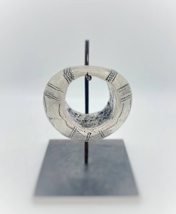 Nella tradizione Fulani, i gioielli sono più di semplici ornamenti: custodiscono storie, identità e relazioni. Ogni incisione può alludere a un passaggio di vita, a un legame matrimoniale o a un simbolo di prosperità