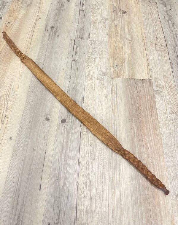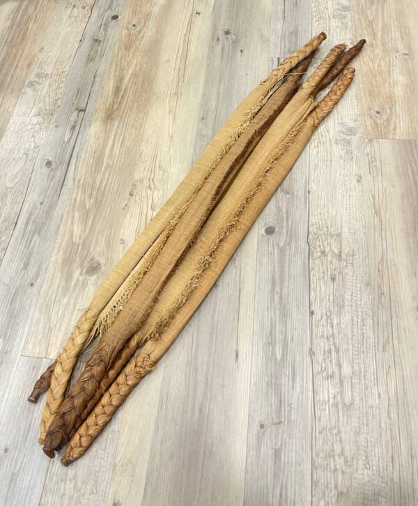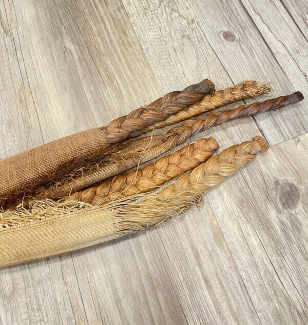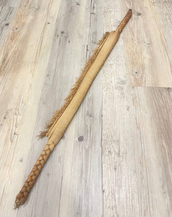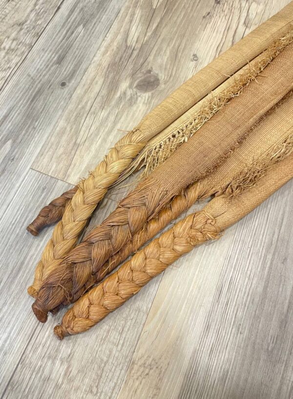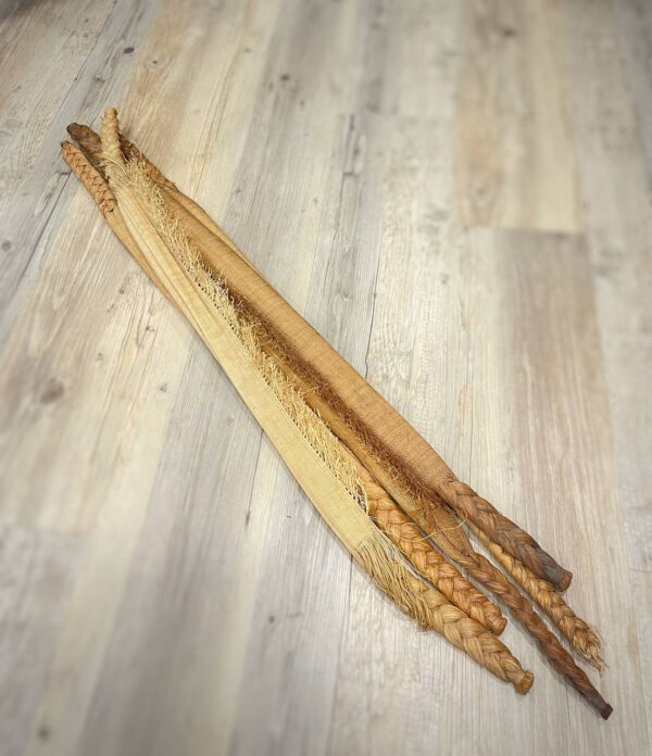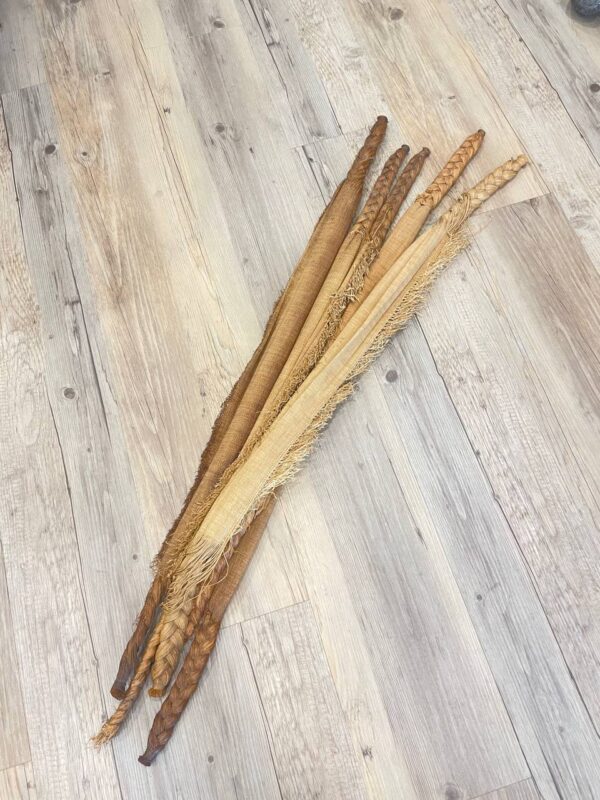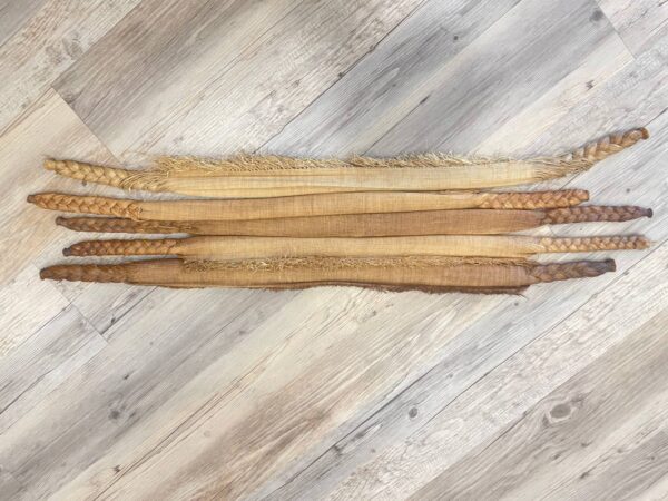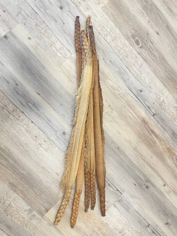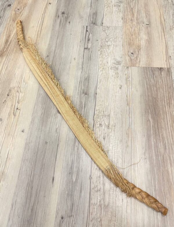 Realizzate intrecciando con straordinaria abilità le fibre di palma o rafia, le valute Babunda si distinguono per la loro forma allungata con estremità a treccia e superficie finemente tessuta. L’eleganza della lavorazione riflette l’importanza del valore simbolico dell’oggetto: ogni moneta rappresentava ricchezza, alleanza e fertilità, e veniva spesso offerta come dono nuziale o segno di prestigio.