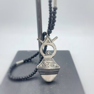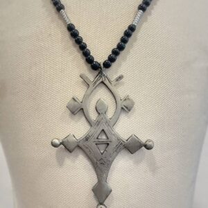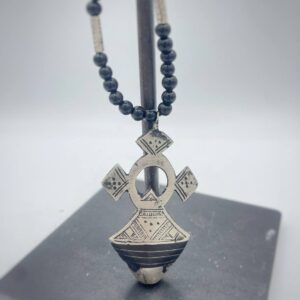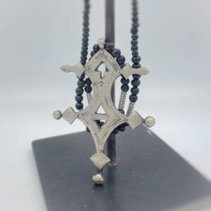 Collana Tradizionale Tuareg con Croce Egourou in Argento e Perline di Onice
